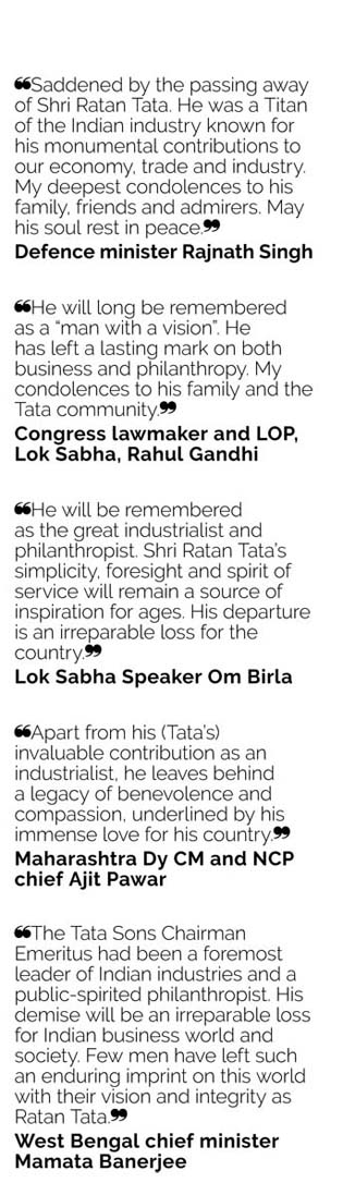 Meanwhile, coming out of the mourning stage, the group is steadying itself to uphold the ideals and dreams of the its late chairman, who will eternally remain the ‘ratan’ of Indian industry and corporate responsibility. As one of the prime proponents and supporters of the Made in India, only a few days ago, India’s first private sector aircraft manufacturing facility was inaugurated, where 40 C-295 aircraft will be made, as a collaboration between Airbus of Spain and Tatas.