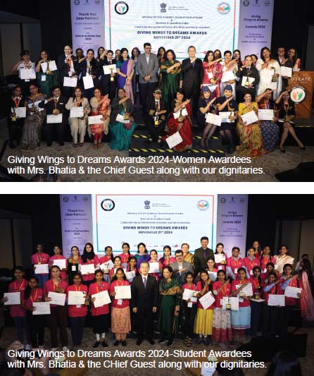 Taking another step towards encouraging young girls to explore the various avenues in Aviation, 41 selected school girls who had attended Girls in Aviation Day events held across the country in 2024 and 2023 were also rewarded at the Women in Aviation India Awards ceremony, as Young Aviation Ambassadors, wherein they received sponsorship for courses related to the travel & aviation industry. At the first Awards ceremony held in 2022, Shri Jyotiraditya M. Scindia, former Union Minister of Civil Aviation, Government of India was the Chief Guest of the program and the Awards 2023 ceremony took place in the august presence of distinguished Chief Guest, General (Dr.) V. K. Singh (Retd.), Hon’ble Union Minister of State, Ministry of Civil Aviation & Ministry of Road, Transport and Highways, GOI, who presented the awards to the women achievers. While last year, the award ceremony took place in the distinguished presence of Shri Vumlunmang Vualnam, Secretary, Ministry of Civil Aviation, Government of India and other eminent dignitaries present at the ceremony included Smt. Usha Padhee, IAS, Principal Secretary, Commerce & Transport Dept., Govt. of Odisha.